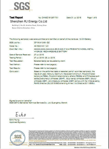 Standard:SGS Number:CNAC1512971701 Issue Date:2015-07-13 Expiry Date:2030-07-15 Scope/Range:Lithium battery cells & lithium battery pack Issued By:SGS |